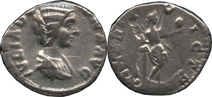 This denarius of Julia Domna shows a die clash. If the dies come together without a planchet