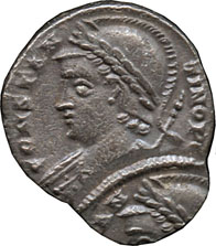 of the coin, such as just the front of the portrait on this Constantine follis.