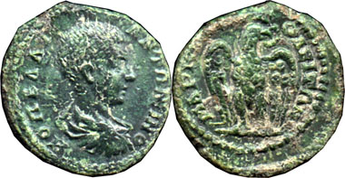 planchet, though, as seen on this Diadumenian provincial, only one face is off-center.