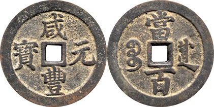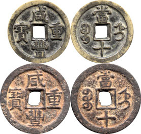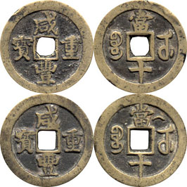 Not much time passed before characters were used that are still in use today. The upper of these two coins