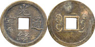The original cash coins have inscriptions with characters that bear little resemblance to the characters used