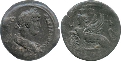 | Obverse Legend: | (AYT KAIC TPIANO)C AΔPIANOC CEB |