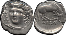 | Obverse: | 3/4ths face of nymph Larissa to left |