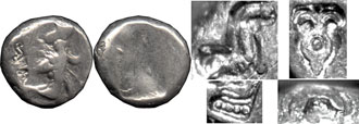 | The magnifications at the right show the counterstamps - an incuse square and an incuse crossed Y. |