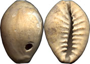 First used as a form of money at the end of the Xia Dynasty (ca. 2200BC), and were in use at least until bronze imitation shells appeared near the end of the Shang Dynasty (1766-1154BC).