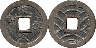 | Obverse Legend: | "Bun Kyu Ei Hou" read top bottom right left as "sentence" "perpetual" "eternal" "treasure". |