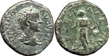 | Reverse: | Serapis, his chest bare and a modius on his head, standing left holding scepter and raisning his hand |