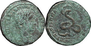 Reverse:Coiled serpent, head nimbate