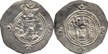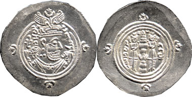 | Type: | 616 (yr. 27) (Xusro II) Dirhim |