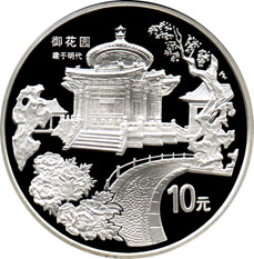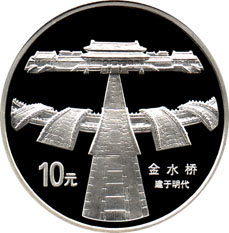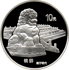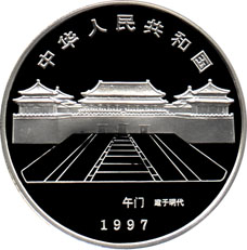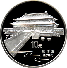 These five coins compose the Forbidden City set of silver proofs, with a mintage of 80,000. The first image is of the common obverse and the other five the individual reverses.