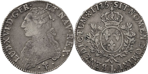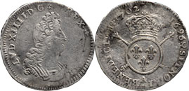 Struck over a coin of 1696 - presumably another 1/12 Ecu, though the diameter of the coin is slightly larger than the one shown in KM.