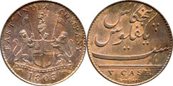 | Type: | British India - Madras Presidency. 1803 5 Cash |