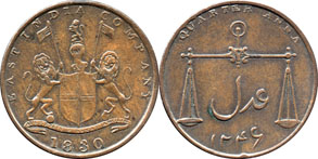 | Type: | British India - Bombay Presidency. 1830 Quarter Anna |