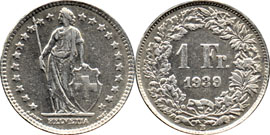 | Type: | Switzerland. 1939-B 1 Franc |