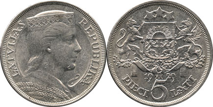 | Type: | Latvia. 1929 5 Lati |