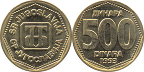 | Type: | Yugoslavia. 1993 500 Dinara |