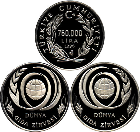 | 5,000 coins were issued and sold with the correct denomination face (top image), but incorrect F.A.O. logo face - the stalks were reversed (right image). Another 5,000 were issued with the same denomination face but the logo corrected (left image). |